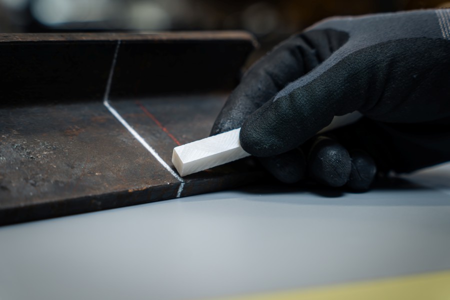 - Dauerhafter, weißer, feuerfester Strich, auch durch Schweißschutzgläser gut sichtbar