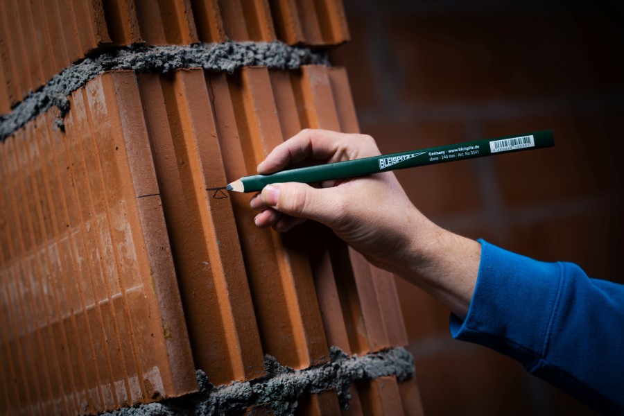 - Zum Markieren von rauen, harten Oberflächen, Ziegel, Stein, Beton